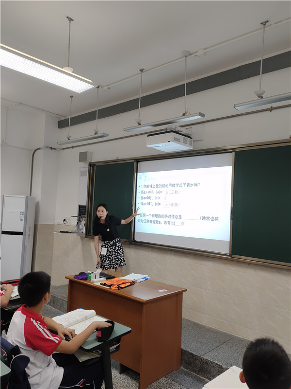 本次活动在初一年级罗锦霞老师的数学课堂《绝对值》中拉开了帷幕。课堂上,罗锦霞老师凸显知识产生的现实意义和价值,为学生提供了丰富素材,引导学生在生活中体验内化,逐步引领拓展。
