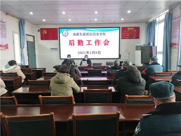 2021年1月8日下午2:00,成都东部新区回龙学校在四楼会议室召开了后勤工作会,参加会议的有食堂从业人员、保安、保洁人员及学校相关管理人员等。