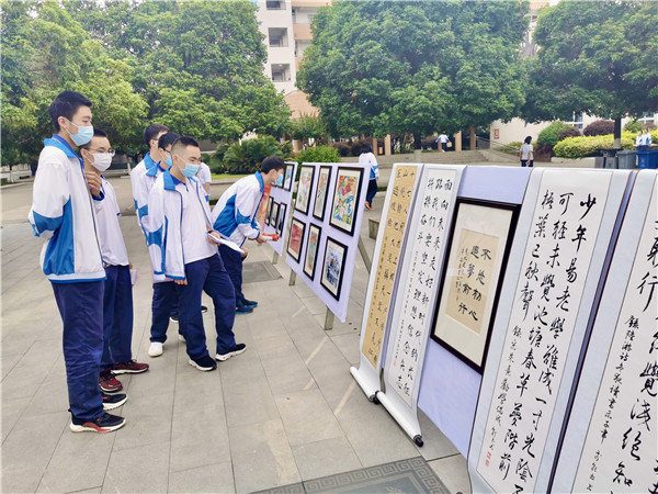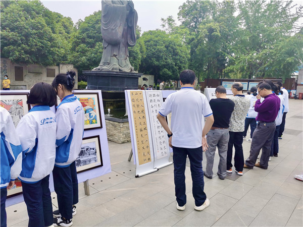 据了解,彭州中学从4月份开始收集作品,全校师生积极参与,经过评选,本次活动共展出优秀作品40余件,作品主题突出,热忱讴歌党的光辉历程和社会和谐幸福生活,生动描绘出中国人民艰苦奋斗、干事创业的动人画卷!