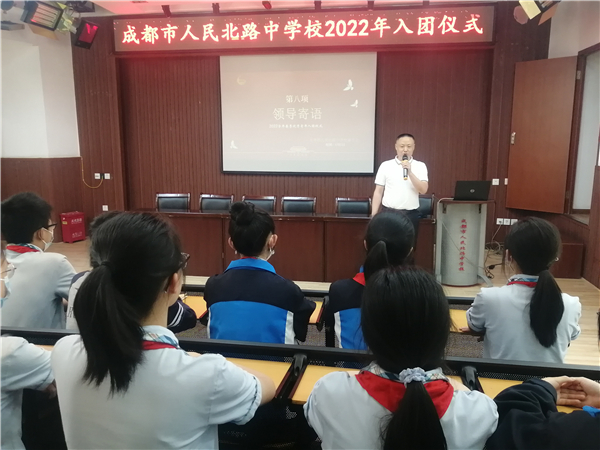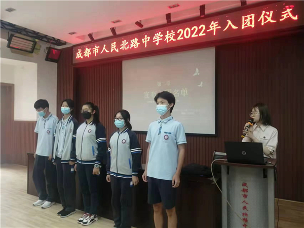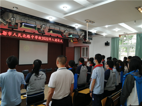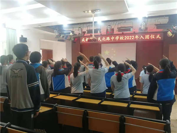 为迎接党的二十大胜利召开,庆祝中国共产主义青年团成立100周年,扎实推进全面从严治团,进一步加强团员意识教育,增强团员组织观念,引领全市广大团员青年厚植爱党、爱国、爱社会主义的情感,继承和发扬“五四精神”,牢记初心使命跟党走,成都市人民北路中学校举行2022年春季优秀青年入团仪式。