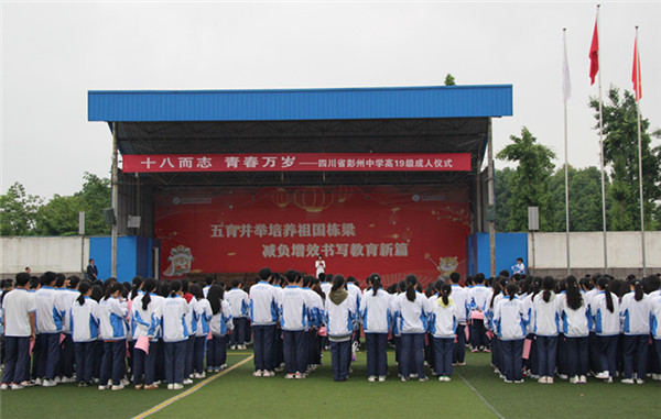 2022年5月18日,四川省彭州中学在学校运动场举行了高三学子成人仪式。