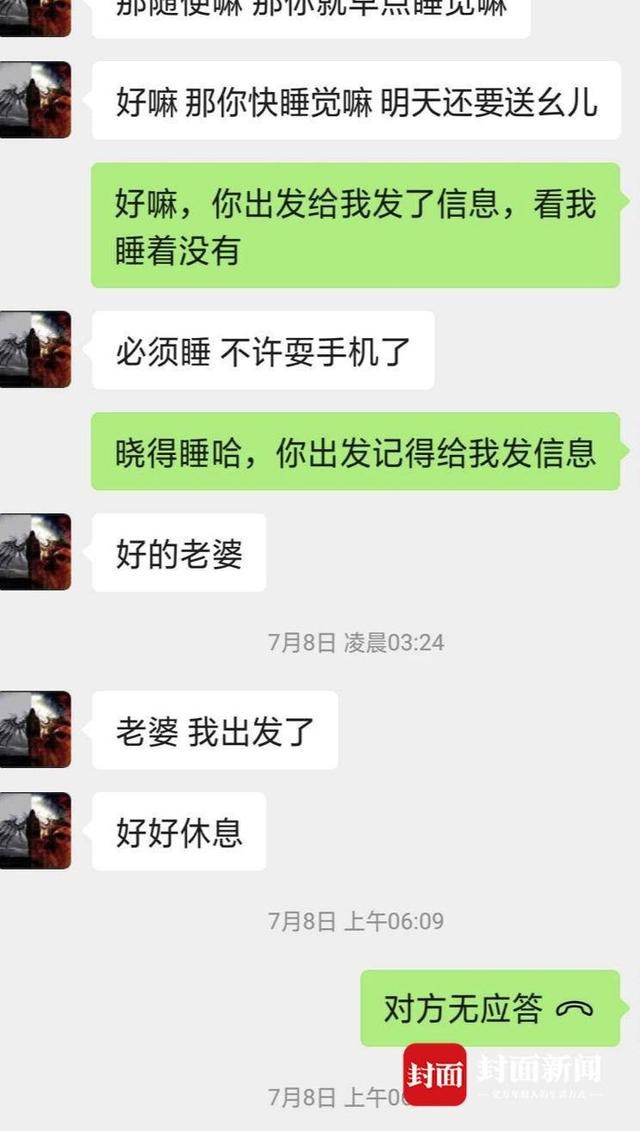 或许是因为担心老公,她比往常醒得更早一些,8日早上6点09分,看到老公没回来,她马上打去电话,提示已关机,一丝不安从她心头掠过。