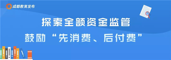 支持龙泉驿区和金堂县试点,探索建立校外培训机构第三方全额资金存管制度、风险评估机制。各教育行政部门将会同金融监管部门,推广和运用上述两个区县的试点成果及经验,完善和加强对校外培训机构资金账户的监管,督导校外培训机构开设资金监管专用账户,自觉接受金融部门对办学资金进行监管。