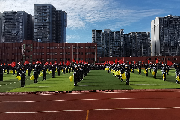 伴随着嘹亮的国歌声,五星红旗冉冉升起,军训结业典礼拉开序幕。20个连队组成的各个方队逐个展示了7天时间优秀的训练成果:捕俘拳、捕俘刀、军体拳、拼刺术、战术、旗语……标准而熟练的动作、雄壮而嘹亮的口号,表现出了军人的铮铮铁骨,也表现了学生的朝气蓬勃、意气风发。“愿以吾辈之青春,捍卫盛世之中华”“请党放心,强国有我”“宣汉二中,我爱你”,铮铮誓言响彻云霄。七天的磨练,同学们都没有退缩,任凭骄阳似火、汗流如注,任凭细雨飞洒、尘泥飞溅,都无法磨灭饱满的精神和完成军训任务的坚定决心。精彩的展示让全体师生真正体验到了纪律严明、坚强勇敢、严谨认真的军魂,同时也受到了强烈的集体主义和爱国主义教育。