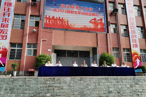8月29日上午,宣汉县第二中学举行了2023年高一新生军训结业典礼。县人武部副部长唐虎、军事科科长万春等领导及学校班子成员出席。典礼由宣汉二中党委副书记、校长王萍主持。