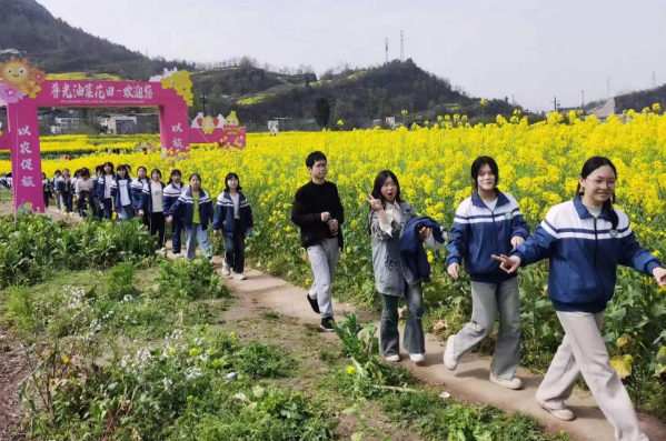十点,学生们参观完博物馆,走进了一大片油菜花田,在春暖花开时,放松身心,走进春天,亲近自然,感受大自然的美,在赏花中研学,更添文化情。