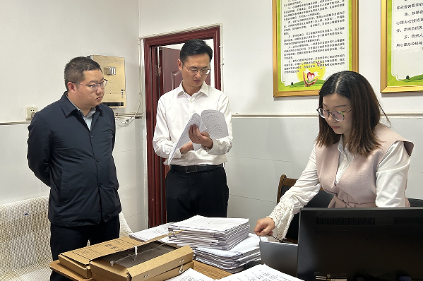 胡锐一行查看了宣汉二中心理健康教育阵地,观看了该校心理健康教育工作宣传视频,查阅了学校心理健康教育工作记录,听取了专职心理教师关于学生心理测评、数据解读、风险评估及危机干预等方面的工作汇报。