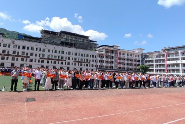 2024年6月5日上午,在土黄中学运动场,学校隆重举行高2021级欢送大会。学校领导与非毕业年级师生共同见证高三学子踏上“征战高考”的荣耀时刻,祝福高三学子金蟾折桂、金榜题名!活动由土黄中学党委副书记文应松主持。