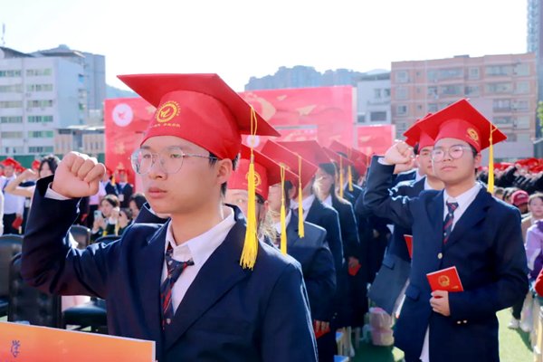 在成人礼仪式上,宣誓环节成为整场活动的第二个高潮。活动分班级进行激情澎湃的宣誓仪式。在庄严的国旗下,以铿锵有力的誓言,宣告了他们即将承担的责任与使命,展现了新时代青年的风采与担当。