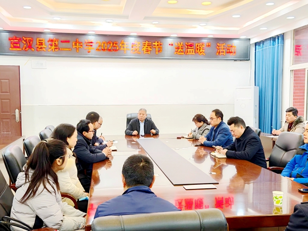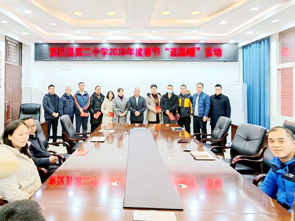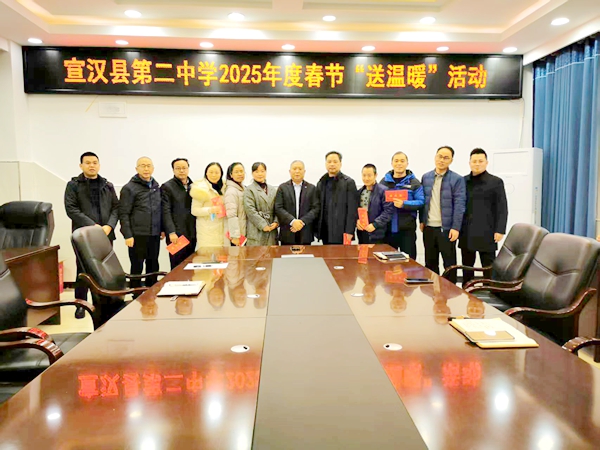 春节将至,岁寒情暖。1月21日上午,宣汉县第二中学开展了2025年春节“送温暖”慰问活动。学校党委书记文伟,党委副书记、校长王萍及校领导班子成员出席。受慰问教职工、乡村振兴驻村队员及工会工作人员等参与了此次活动。
