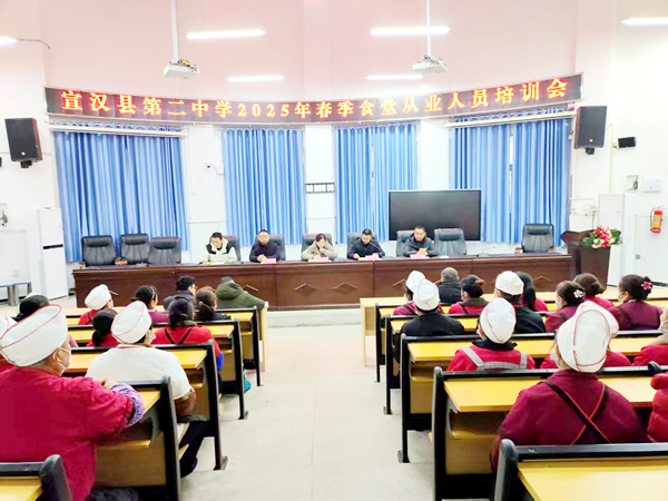 为进一步提升学校食堂的安全管理水平与服务质量,确保全校师生的饮食健康与安全。近日,宣汉县第二中学组织召开了2025年春季学期食堂从业人员培训会。会议由校党委委员、副校长刘毅主持,学校总务处、膳食中心工作人员及全体食堂从业人员参加。学校党委副书记、校长王萍出席会议并讲话。