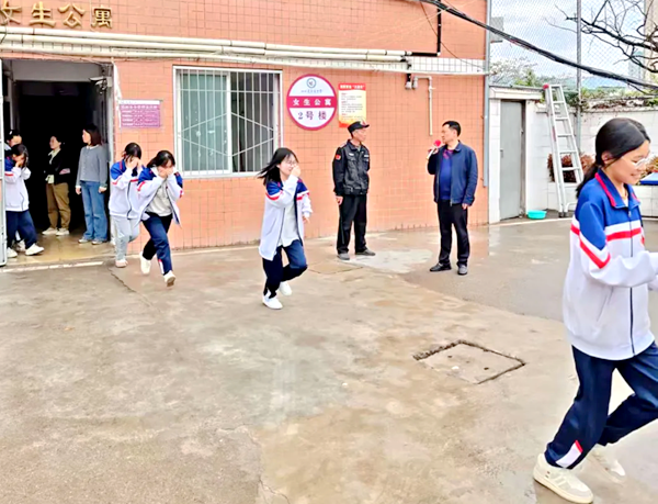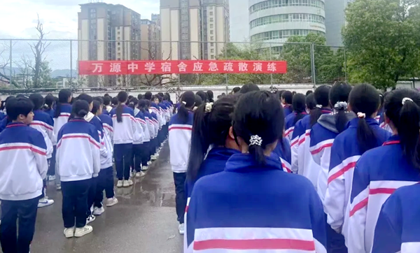 4月11日上午,万源中学组织开展了女生宿舍消防安全应急疏散演练。随着警报声响起,毓秀楼近600名女生在3分28秒内完成安全撤离,本次演练进一步增强了住宿生的消防安全防范意识和应急疏散能力。
