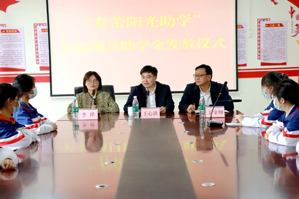 王心洪在讲话中指出“春蕾阳光助学”是巩固教育公平、推进乡村振兴的重要举措。同时寄语学子:“要志存高远、脚踏实地,在逆境中磨砺品格,争做新时代栋梁之材。”
