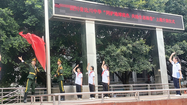 为增强师生生态文明意识,践行绿色发展理念,4月21日,达川中学举行了"同护地球底色,共绘生态画卷"主题升旗仪式。