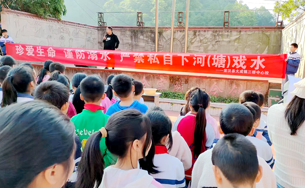 随着气温升高,溺水事故进入易发期。4月27日,宣汉县大成镇三桥中心校举行"生命至高无上,溺水警钟长鸣"防溺水安全教育大会及师生签名活动,全校师生参加。活动中,学校安办主任张富荣作专题安全教育。他强调,溺水是中小学生意外死亡的首要原因,防溺水教育是当前校园安全工作的重中之重。通过案例分析、互动问答等形式,张富荣详细讲解了溺水致死原因、症状表现及预防措施,重点普及了防溺水"六不"原则:不私自下水游泳;不擅自与他人结伴游泳;不在无家长或教师带领的情况下游泳;不到无安全设施、无救援人员的水域游泳;不到不熟悉的水域游泳;不熟悉水性的学生不擅自下水施救。