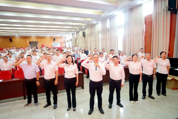 大会临近尾声时,全场再次响起激昂的誓言。全体党员在糜高峰同志的带领下,铿锵有力地重温入党誓词。激昂的誓言字字铿锵、句句千钧,回荡在会场的每一个角落,也回荡在每个共产党员心中,不仅彰显了全体党员对党的无限忠诚和为党的事业奋斗终身的坚定决心,更让在场的每一位党员心灵受到强烈震撼与深刻洗礼,时刻提醒着大家要牢记共产党员的政治身份和初心使命。
