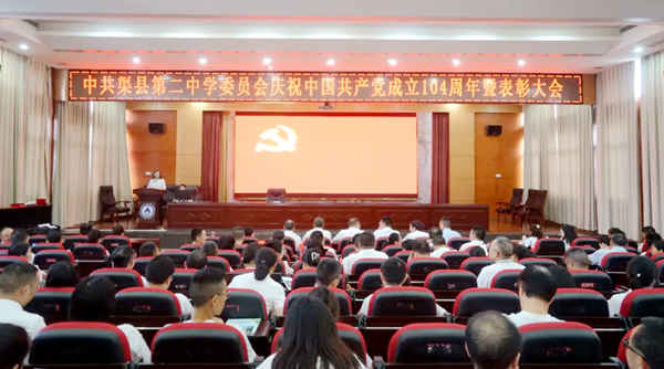 2025 年 7 月 1 日,渠县第二中学召开庆祝中国共产党成立 104 周年暨 2025 年 “七一” 表彰大会。在职教职工党员和离退休党员代表共 100 余人参加庆祝活动,学校党委副书记沈秀梅主持庆祝仪式。