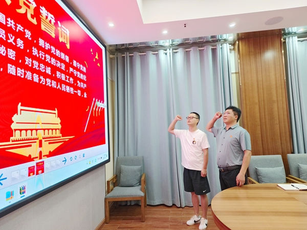 紧接着,支部副书记罗秋同志带领预备党员罗兵同志进行入党宣誓,并5名优秀党员进行表彰。