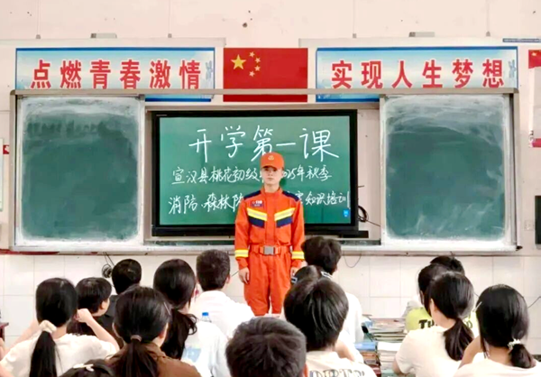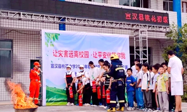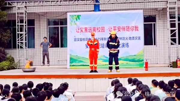 为全面提升师生消防安全意识和应急避险能力,筑牢校园安全防线,2025年9月4日上午,宣汉县桃花初级中学安办、政教处联合峰城镇政府专职消防救援站,成功组织开展了新学期消防安全疏散演练暨安全知识培训活动。