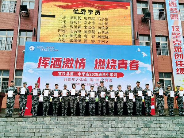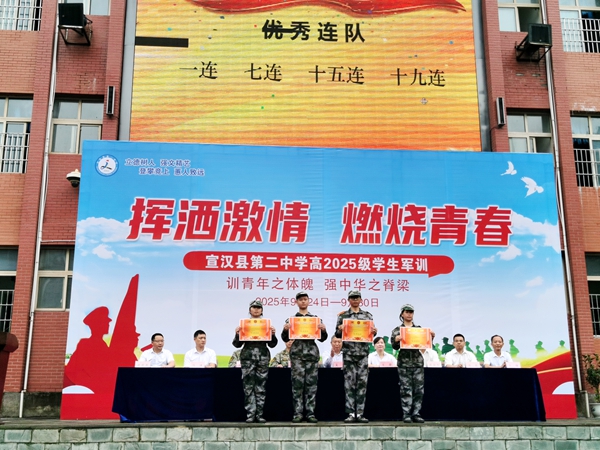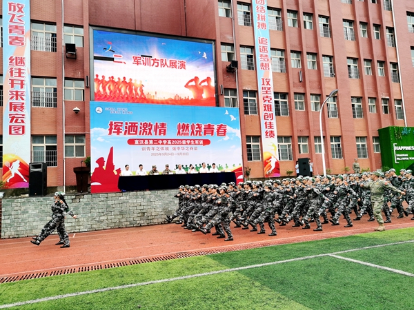 9月30日上午,宣汉县第二中学高2025级学生军训结业典礼圆满举行。县人武部军事科参谋宋绪林,2025级学生军训团副团长王兴建,宣汉二中领导班子成员等出席,共同检阅高2025级学子为期七天的军训成果。典礼由校党委委员、副校长唐世杰主持。