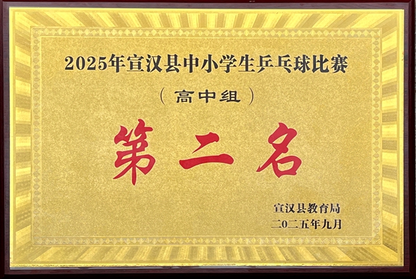 在9月25日-28日举行的2025年宣汉县中小学生乒乓球比赛中,宣汉县第二中学代表队凭借扎实的技术、顽强的斗志,一路过关斩将,斩获高中组团体第二名的优异成绩,六名队员也在单打赛场多点开花,各自拿下亮眼名次,共同为校争光。