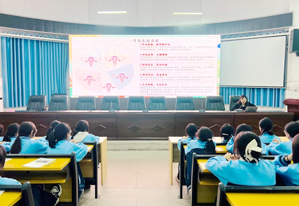 针对“如何正确处理生理期不适”“怎样缓解考试前的紧张情绪”等具体问题,两位老师通过案例分享、互动提问等形式,用专业知识为女生搭建起科学认知青春期的“桥梁”,帮助她们以从容姿态接纳身体与心理的成长变化。