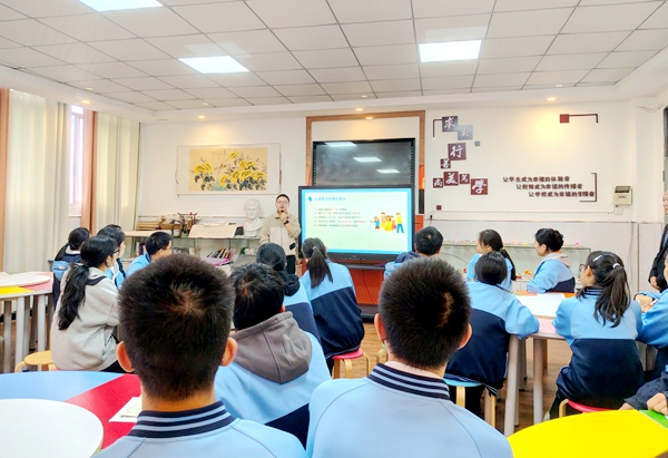 学校专职心理老师罗华林给大家系统讲解了“心理委员是什么”,阐述了班级心理委员的四重角色。他通过“大风吹”游戏引导大家思考“做一名心理委员需要具备哪些素质”,同学们在活动中检视自身的优势品质,学习“心理委员的角色要求”。