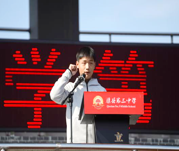 入场仪式后,渠县第三中学党委副书记、校长熊富强随即发表致辞。他首先向运动会的顺利开幕致以热烈祝贺,向辛勤付出的教练员、工作人员及裁判员表达诚挚敬意,并向全体同学寄予深切期望:以“不破楼兰终不还”的决心驰骋赛场,以“直挂云帆济沧海”的豪情超越自我,在竞技中书写青春华章。