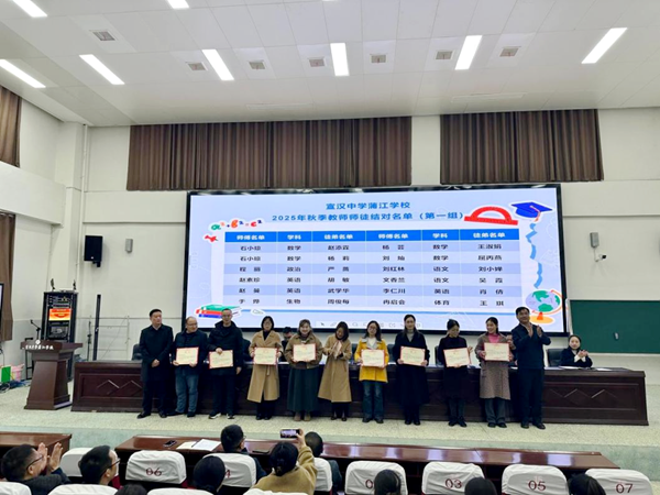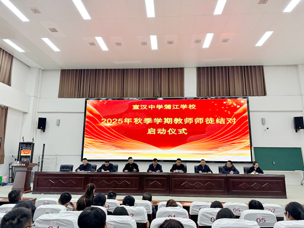 秋阳和煦,杏坛流光。11月19日下午,宣汉中学蒲江学校全体教职工齐聚学术报告厅,隆重举行了2025年秋季“师徒相传,携手共进”师徒结对启动仪式。此次活动旨在持续深化学校“青蓝工程”建设,弘扬“传、帮、带”的优良育人传统,为青年教师专业成长引路护航,为学校高质量发展蓄势赋能。