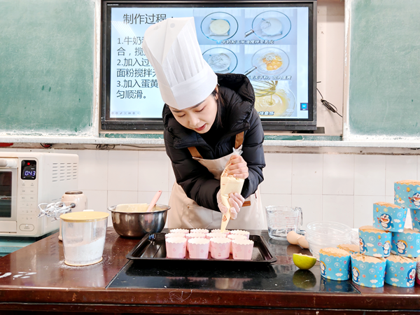 “搅”蛋糕,留回忆。宋小愉老师指导孩子们精准称量、搅拌、装饰,完成蛋糕制作。孩子们捧着作品满是自豪,这堂浸着麦香的实践课,不仅让孩子们学会了烘焙的技能,更让“亲手创造”的快乐与“分享”的温暖,像蛋糕里的糖霜,悄悄融进了成长的时光里。
