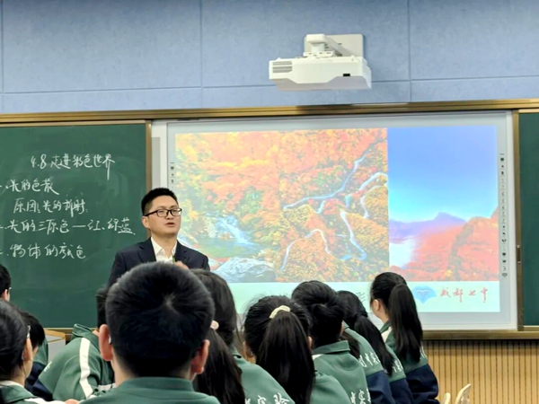 课例展示部分,来自成都七中的语文教师李欣、英语教师李茂、物理教师吴力强以及开江本地三位教师,分别呈现了AI理念融入学科教学的实践课堂。教学中,教师注重启发引导、创设认知冲突、鼓励学生主动探究,展现了技术赋能下课堂形态的生动变化。