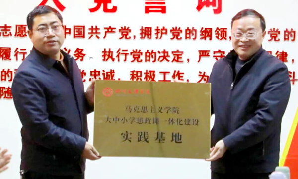 随后,双方举行“校地合作协议”签约暨授牌仪式。四川文理学院马克思主义学院院长孙杰与宣汉县南坝中学校长于开德共同签署协议,并向南坝中学授予“四川文理学院马克思主义学院大中小学思政课一体化建设实践基地”牌匾。此举标志着两校将在思政教育领域建立长期、稳定的协同合作关系,开启资源共享、优势互补、协同育人的新篇章。