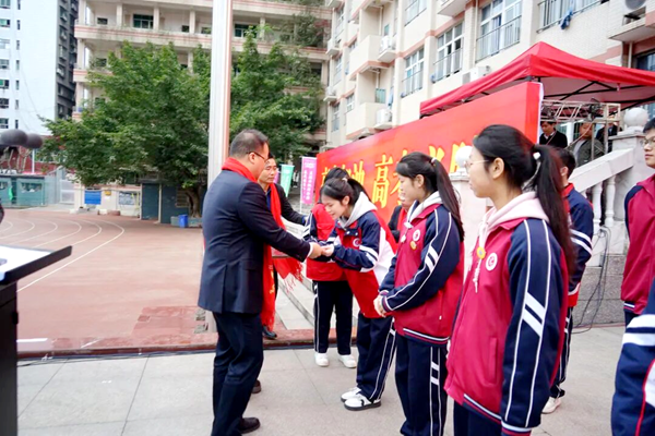 学生代表手捧鲜花与红围巾,缓步走向主席台,向学校领导和全体高三班主任献上最诚挚的敬意。鲜花映衬着笑脸,红围巾传递着温暖,那一刻,师生情谊在春风中悄然升华,三年教诲化作无声的感动。