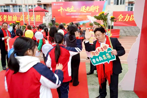 仪式上,副书记、校长何纬枫也热情致辞。他深情回顾成人礼的感人瞬间,并指出:“十八岁,不仅是年龄的刻度,更是责任的开端。从今天起,你们正式成为中华人民共和国的成年公民,既要扛起孝亲敬长、尊师笃行的家庭责任,更要树立胸怀家国、勇担使命的时代担当。”他强调,成人礼是高考冲刺的新起点,勉励同学们以成人之姿、立鸿鹄之志,把责任化作动力,用拼搏书写答卷。他还特别要求全体高三班主任坐到学生队伍前方,成为学生“一抬头就能看到的力量”,用陪伴与坚守点亮百日冲刺之路。