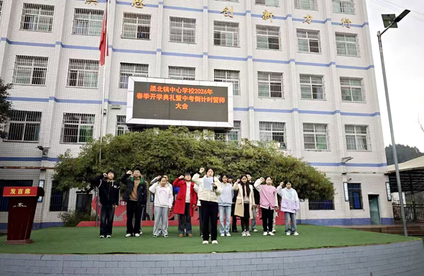 春潮涌动,逐梦前行。为凝聚全校奋进力量,吹响新学期奋斗号角,激励九年级学子全力冲刺中考,渠县渠北镇中心学校于2026年3月12日隆重举行2026年春季开学典礼暨中考百日誓师大会。全校师生齐聚操场,以昂扬姿态共启新程、共赴荣光。