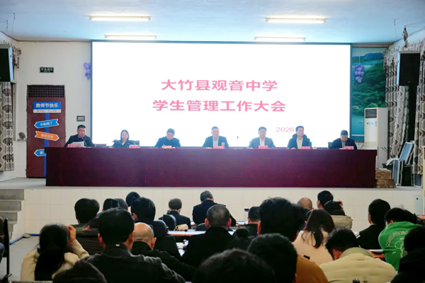 春风浩荡满目新,扬帆奋进正当时。为扎实做好2026年春季学期各项工作,确保新学期开好局、起好步,近日,大竹县观音中学召开2026年春季学期学生管理工作会议,旨在进一步统一思想、明确任务、压实责任,推动学校管理精细化、常态化、规范化,营造整洁、文明、安全、有序的育人环境。学校党政工团领导、全体班主任、门卫、宿管等相关人员参加会议。