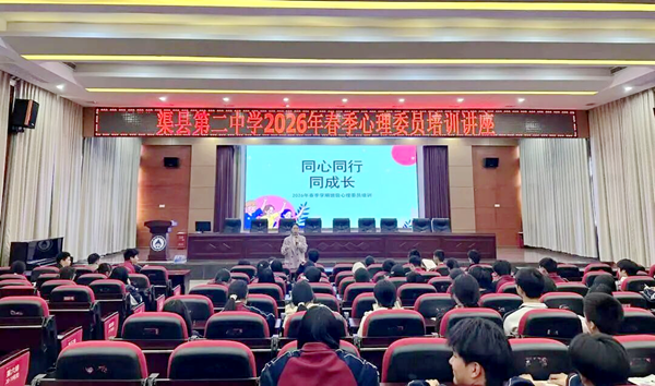此次培训进一步明确了心理委员的工作职责,提升了学生骨干的心理助人意识与实操能力,为营造积极、温暖、互助的校园心理氛围奠定了坚实基础。据介绍,渠县第二中学心理咨询室除持续开展日常心理咨询与团体辅导活动外,还将结合各班级实际需求,不断丰富心理健康教育形式,切实将“健康第一”理念落到实处,全方位护航学生健康成长。