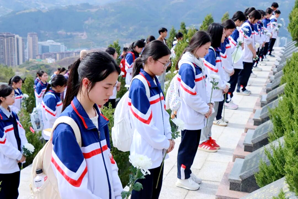 3月27日下午,万源中学在万源市烈士陵园,举行2026年“清明祭英烈·丰碑励青春”主题祭扫活动。校党委副书记张国锋出席活动并致辞,万源保卫战战史陈列馆、达州市陈世康少先队名师工作室、万源市杨德超音乐名师工作室相关人员及八年级全体师生1400余人参加活动。