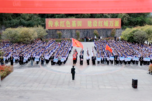 铭记历史万源保卫战战史陈列馆讲解员张瑶饱含深情地讲述了“笋子梁十二勇士”的英勇壮举,引领大家一同回顾那段战火纷飞的革命历史。四个名师工作室成员与学生代表带来了《英雄赞歌》《如愿》等精彩节目。歌声停歇,全体师生高高举起右拳,面向烈士纪念碑庄严宣誓。那铿锵有力的誓言,彰显出新时代青少年传承先烈遗志、立志报效祖国的坚定决心。