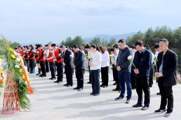 敬献花篮,寄托哀思。师生代表向革命烈士敬献花篮,全体人员默哀,深情缅怀革命先烈的卓越功勋。仪式的最后,师生们手持洁白的菊花,依次走向烈士墓,为烈士墓清扫尘土、培土添新、敬献鲜花,以实际行动表达对革命先烈的无尽追思。