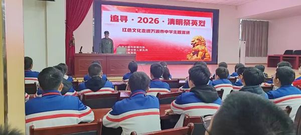 为传承红色基因”的重要指示精神,进一步加强青少年爱国主义教育和革命传统教育,2026年3月30日下午,参战老兵、八级伤残军人马德均同志走进万源中学,为师生带来了一场题为《铭记历史,致敬先烈》的红色文化宣讲。