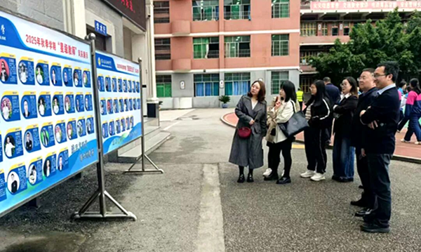 程素芳一行在宣汉县教育局副局长郑磊等的陪同下参观校园。宣汉县南坝中学党委书记郑自涛、校长于开德向来宾介绍学校情况。作为一所地处大巴山深处的精品校园,南坝中学历史底蕴深厚、校园环境整洁、师生精神风貌良好,受到来宾们高度赞许。校园里,“星级教师风采展示”“春季劳动实践活动成果展”引起来宾极大兴趣,大家纷纷表示值得学习借鉴。