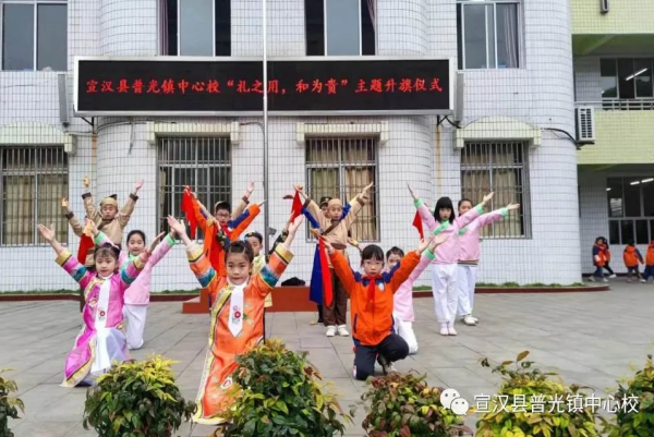 十一月,晨曦微凉,草木清香。为提升孩子们的民族自豪感和自信心,激发他们的爱国爱家爱校热情,培养他们主动学习、传承、弘扬传统礼仪文化的良好习惯,11月27日上午,宣汉县普光镇中心校举行了“礼之用 和为贵”为主题的升旗仪式。