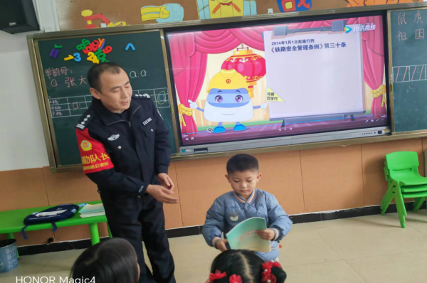 活动内容丰富,形式多样,主要包括以下几个方面:知识讲解:土溪火车站工作人员和民警张警官向幼儿们详细讲解了铁路护路的基本知识,包括铁路信号灯的含义、通行标志、安全警示等,帮助孩子们了解铁路交通安全的重要性。视频播放:通过播放相关铁路护路安全的视频,让孩子们更加直观地了解安全防范措施,进一步加深对铁路交通安全知识的理解。模拟演练:在幼儿园周边设置了铁路护路模拟场景,让孩子们亲身体验如何正确地通过铁路交通,增强他们的实际操作能力。知识问答:组织孩子们进行知识问答,检验他们掌握铁路护路知识的程度。