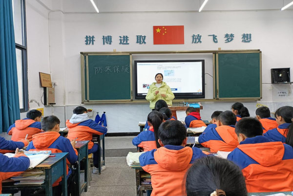 在安全课上,各班教师通过引导学生观看图片、视频、小故事等,让学生了解冬季防寒保暖及安全常识,例如:寒冷天气注意防寒保暖,针对天气变化要适时加穿衣服,谨防感冒;加强课间、课外体育锻炼等等。同时还提醒学生如遇雨雪等恶劣天气,要穿厚、穿暖,出门戴口罩、帽子、手套等防护用品,尽量穿防滑的平底鞋,避免因天寒路滑造成摔伤等事故。此外,学校还通过微信群、短信等方式,及时向家长传达雨雪天气中的安全注意事项,提醒家长加强对孩子的安全教育和监管。