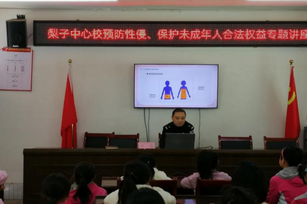 为加强未成年人保护,让学生有效避免性骚扰和性侵害的发生,2023年12月19日,梨子中心校法治副校长李进同志到校开展了以“守护花蕾,平安你我他”为主题的预防性侵害专题讲座。