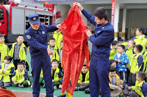 在此感谢达川区消防中队为我园孩子们提供这样一个体验的平台!(达州市达川区三里幼儿园)
