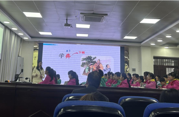 本次公开课,由李老师带来六年级文言文《学弈》。李老师教态亲切自然,让人如沐春风。整节课,李老师始终以学生为主体,既有学生个体的自主探究,也有小组的合作学习。她采用“读其文、明其意、悟其理”读讲结合,巧妙地引导学生理解课文内容,对比两人学下棋的正反事例,悟出做事应该专心致志,不可三心二意的观点。