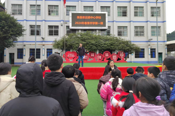 为了将《开学第一课》落到实处,2024年2月26日上午,渠县渠北镇中心学校开展多形式上好《开学第一课》。首先学校德育李瑾老师进行了主题为“好习惯可以改变一生”的讲话,要求同学们从小树立远大的理想,养成良好的行为习惯,做一个举止文明、诚实守信、懂得感恩的好少年。并且从法治教育、心理健康教育进行全面剖析和工作部署。