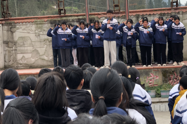 活动中,九年级全体学生以班级为单位,轮流进行宣誓,满腔豪情伴随著雄壮的誓言,久久回荡在校园的每个角落,将本次中考动员大会推向高潮。